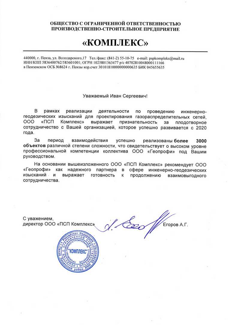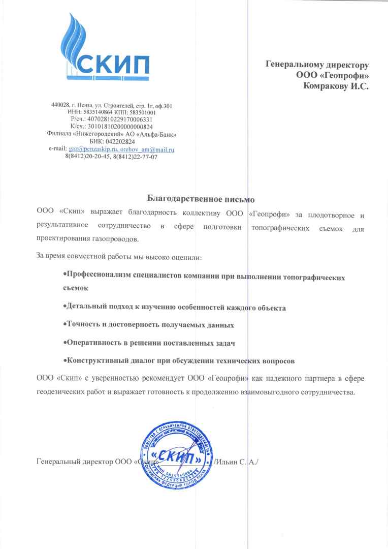 Благодарственное письмо